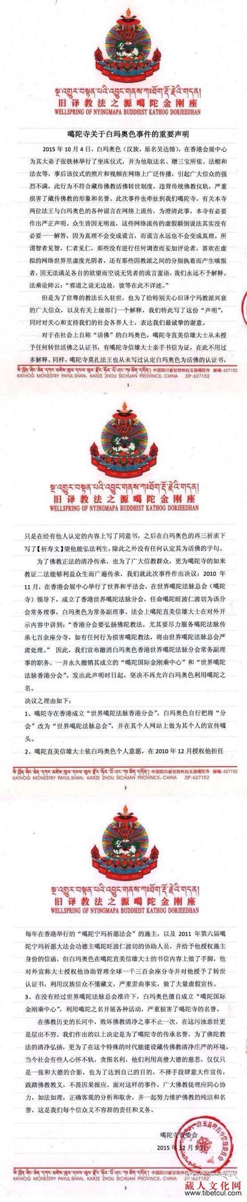 热点关注:甘孜民宗委称白玛奥色非活佛
