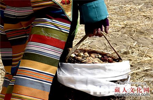 早上9时30分许,农田里白色的桑烟升腾。两位僧人为村里的开耕春播念经祈福;十位能歌善舞的妇女站成一排,吟唱着吉祥的歌曲;村民们则为唱歌的妇女和即将耕种的男女敬献哈达、切玛、青稞酒。这是祈愿新的一年风调雨顺、五谷丰登。