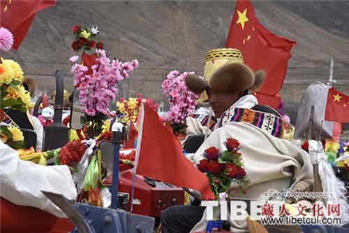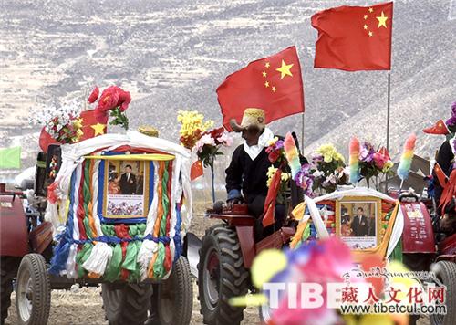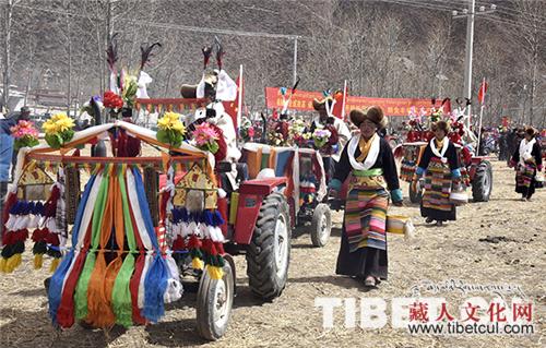 图为开耕仪式上,村民们为拖拉机手敬献切玛。