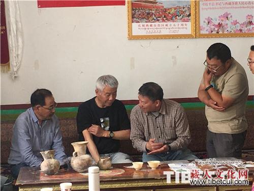 图为考古学家在皮央村讨论出土器物