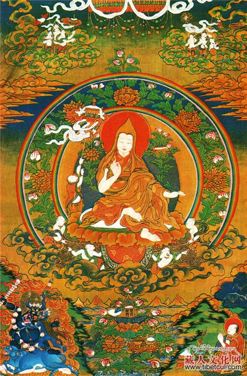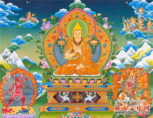 一直到16岁的这几年间,宗喀巴大师完全依止敦珠仁钦尊者,学习显密教法。大师赋性天聪,超群拔众,对于一切没有经过传授的经典,只要稍微的思索一下,就可以读诵如流,没有任何滞碍,敦珠仁钦仁波切眼见如此,更加高兴。为了使他智慧早日开发,特别传授文殊五字明和妙音天女让他修习,敦珠仁钦仁波切深知大师将来必定得证菩提,当转无上大法轮,是佛教中的大法王,是一切众生的大依怙主,所以就像培植药王树一样,一心一意地教导大师。只要是对大师有帮助的,不论是显是密,全部毫不吝惜的倾囊教授。因此大师在入藏时,闻、思、修三慧资粮,已相当广备,奠定了广事修学成功的基础。后来大师每当想起敦珠仁钦仁波切所赐给的恩德时,往往泪流满面地说:“敦珠仁钦金刚上师的恩德最为深广,就是父母的慈爱也不过如此。”