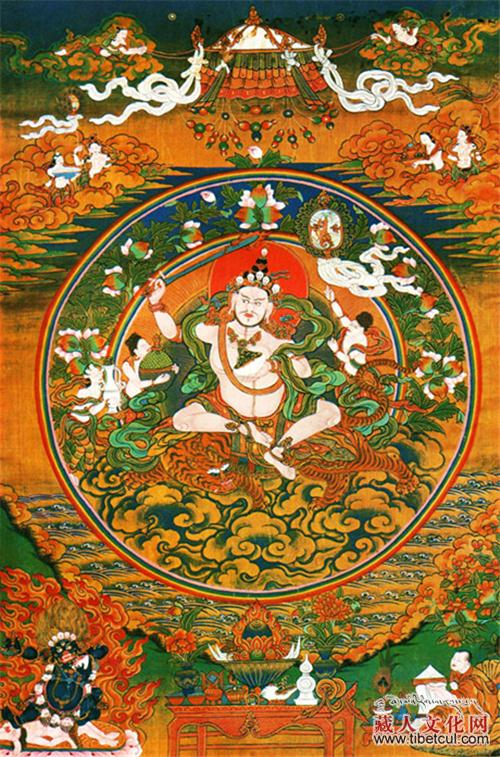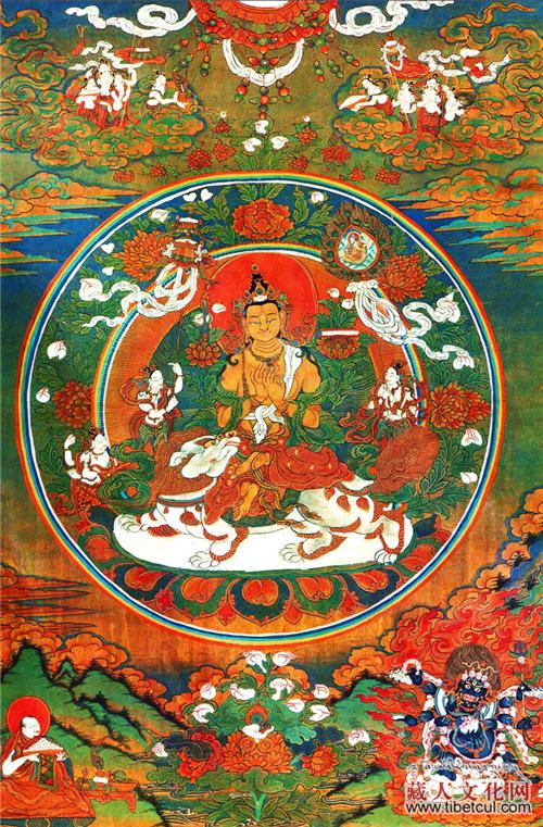 据说现在每逢节日时,仍然出现彩虹穹隆。敦珠仁钦尊者的先知神通无与伦比,于圣大师赴西藏卫地之后,又新建佛经、佛像、佛塔等。当临终之时,在天空里仿佛出现了诸佛打击铙钹、敬献鲜花等,空中彩云缭绕,北方锣鼓齐鸣,诸声齐奏说:“往生于北方鼓音如来佛土。”