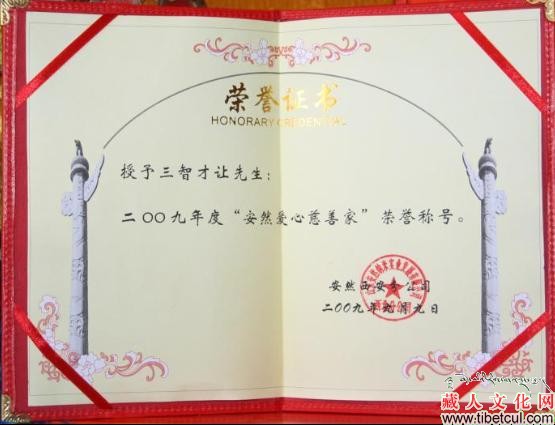 藏族慈善人士三智才让被授“安然爱心慈善家”