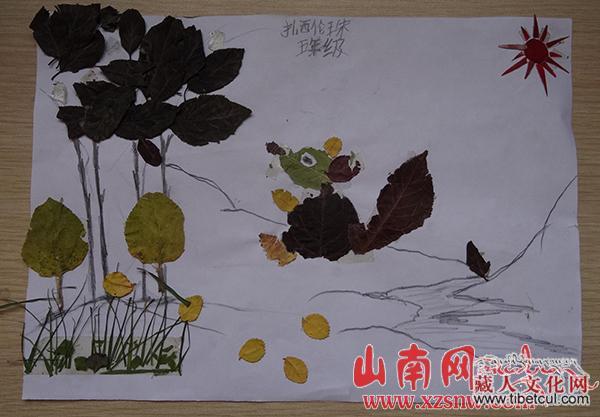 山南桑日县绒乡小学树叶贴画手工课陶冶学生情操