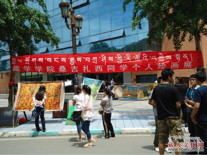 西南民族大学藏学学院桑吉扎西同学昨日举办其个人画展