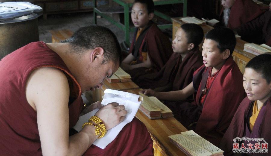 青海玉树禅古寺寺院小学:小僧人们学习经文英语计算机