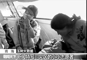 10岁藏族小孩做志愿者照顾地震伤员当翻译志愿者协助救援