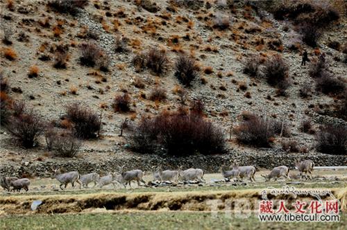 西藏山南琼结县雪康村农田上出没野生岩羊