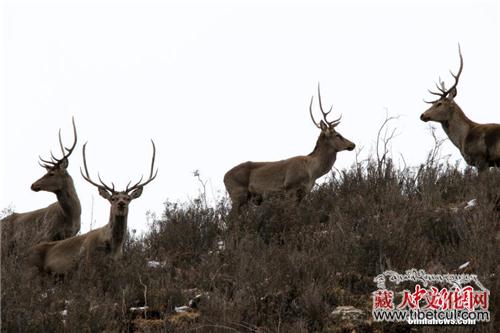青海玉树野外拍摄到大群白唇鹿 鹿角宛如“珊瑚”