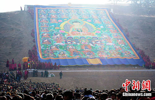 拉卜楞寺举行晒佛节 展出西方极乐世界佛(图)