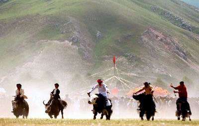 青海玉树草原上别样的牦牛比赛