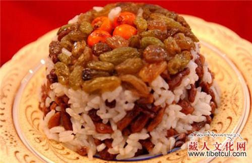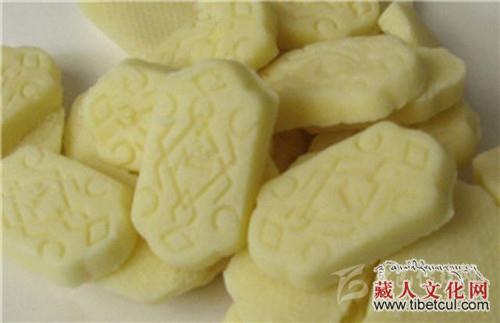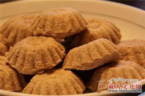 藏族酥酪糕是藏族的著名糕点,在藏族同胞的家里常用作款待客人的美味点心。而且它本身具有很好的保健功效,能够在品尝美食的同时又滋补身体。藏族酥酪糕食用起来奶味浓郁,十分受到不同年龄及族群的喜爱,其中还有多种对身体十分有益的材料,例如西藏人参果就是一种纯天然无污染的滋补食品。酥酪糕是用提取过奶油后的乳白色淀粉(藏名曲热)晾干后,用磨磨成粉末,拌入黄油(奶油)、白糖、角麻(人参果)、葡萄干、桃仁等,做成椭圆形、方形,表面有红丝绿丝摆成图案,表现吉祥、长寿,放入笼屉内蒸熟,宾至可整块献上,或切成片状。据说它有滋补强身之功效。