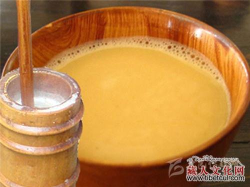 酥油茶是藏族群众每日必备的饮品。是西藏高原生活的必需。寒冷的时候可以驱寒;吃肉的时候可以去腻;饥饿的时候可以充饥;困乏的时候可以解乏;瞌睡的时候,还可以清醒头脑。藏民们日常制作酥油茶时一般使用砖茶,需要时用刀切削一小块备用。然后在锅中加300毫升水煮沸,加3到5克碎砖茶,煮到茶水变黑熄火。茶水变色后,可加入0.5克盐。如果天气寒冷的话还可以多加一些盐。最后,再加入2克酥油(约汤匙的三分之二)。饮用时将酥油茶经过滤网注入茶壶中再倒进小茶杯饮用。