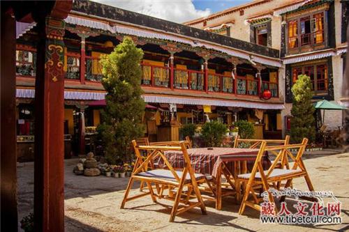 看护桑珠颇章的卓玛打开大院的正门后,顿觉优雅宁静的气息扑面而来。一楼中央的露天场地,一块块石板错落有致地镶嵌在地面,踏在上面,令人产生一种置身江南古镇的错觉。除了看护这座大院的卓玛外,院中并无人住。院内极其安静,以致大院上空飞鸟的婉转鸣叫听起来分外清晰。