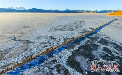 此时,村里的妇女们忙着为羊群画出一道冰面上的“羊肠小道”。她们在普莫雍错冰面撒上牛粪炉灰,防止羊蹄打滑,这条连接湖岸和湖心岛总长3公里左右的灰色小道,成为羊群的安全通道。
