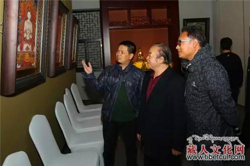 康·格桑益西导师在欣赏唐卡