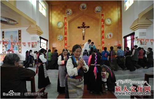 当地的藏族信徒在举行弥撒