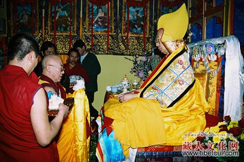 祈竹仁波切与大藏寺 第七世祈竹仁波切——(洛桑顿珠)善慧义成的出生地是西藏东部嘉绒地区的一个叫“霞渡”的小乡村,即现在的四川省阿坝州马尔康县脚木足乡。距四川省成都市四百多公里,称为“川北”地带。区中有大藏寺(Dhe-Tsang,文史上亦称“答仓”、“大泽”等异译)等名刹,祈竹仁波切正是大藏寺的法台。第一世祈竹仁波切名号为"达尔汗南索温布官卡益西"(Khejok Tarhen Namso Kunga Yeshe),曾赴北京晋见乾隆皇帝,并得册封、赐印及赐予很多官廷礼物,大藏寺中至今仍存有很多乾隆御赐印章、圣旨及布料等。祈竹仁波切从十岁入寺起,在大藏寺一共住了八年左右。依止洛桑达华大师学习藏文以及各种经论和仪轨。在十八岁的时候,徒步去拉萨色拉寺学经。色拉寺与甘丹寺及哲蚌寺被称为世界三大佛教学府。这三间寺院是专门提供僧伽教育的地方。学僧由西藏各地来到这三大寺中,接受佛学的教育,在三大寺毕业后,僧人可以回乡弘法,也有些会入山进行闭关,有些则选择进入密院进修密法。在寺院中,祈竹仁波切除了课程上的师长外,另外也跟第二世萨巴仁波切(Gyalrong Sharpa Rinpoche)及立尊仁波切(ZhungpaLaptsun Rinpoche)学法。萨巴仁波切当时约七十岁,在开示时,对佛经中的任何一个词,都可由多个角度诠译,学问深不可测。在祈竹仁波切二十岁时,在大师与另外九位长老面前求授了比丘戒。在入寺第二年,在帕绷喀大师的高足赤江仁波切(Trijang Rinpoche)面前听受了菩提道次第教法以及灌顶。并在此后的二十多年中,曾多次在西藏及印度接受大师的菩提道次第开示,又随大师受怖畏金刚及金刚瑜伽母灌顶等。自一九七一年起,大师便成为了祈竹仁波切心中的根本上师。