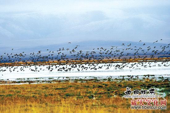 这些天,家住郭茂滩天鹅湖边的藏族老人西合道每天都要到湖边转转。天鹅湖是尕海湖的一部分,眼下,这里的斑头雁正集群南下,准备越冬。