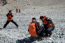 小学生们挥舞着巧克力,时间长达五分钟 珠峰大本营脚下,志愿者在捡垃圾